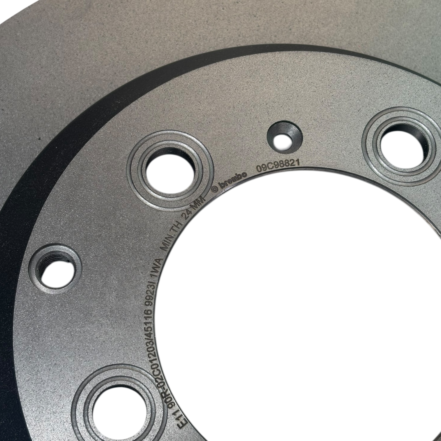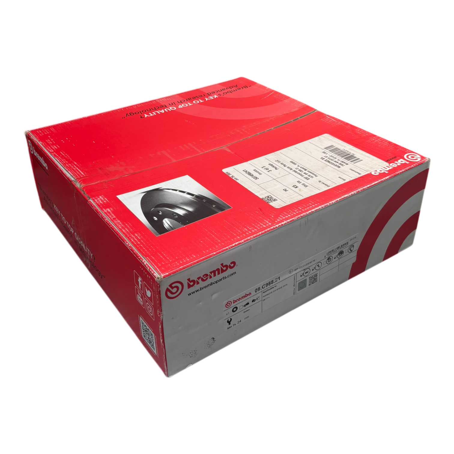 El disco Brembo 09.C988.21 destaca por su tecnología UV Coating, un revestimiento ecológico que protege toda la superficie del disco contra la corrosión y oxidación, manteniendo una estética limpia por más tiempo. Al ser de alto contenido de carbono, ofrece una conductividad térmica superior, lo que reduce las vibraciones y el ruido (NVH) durante el frenado intenso.