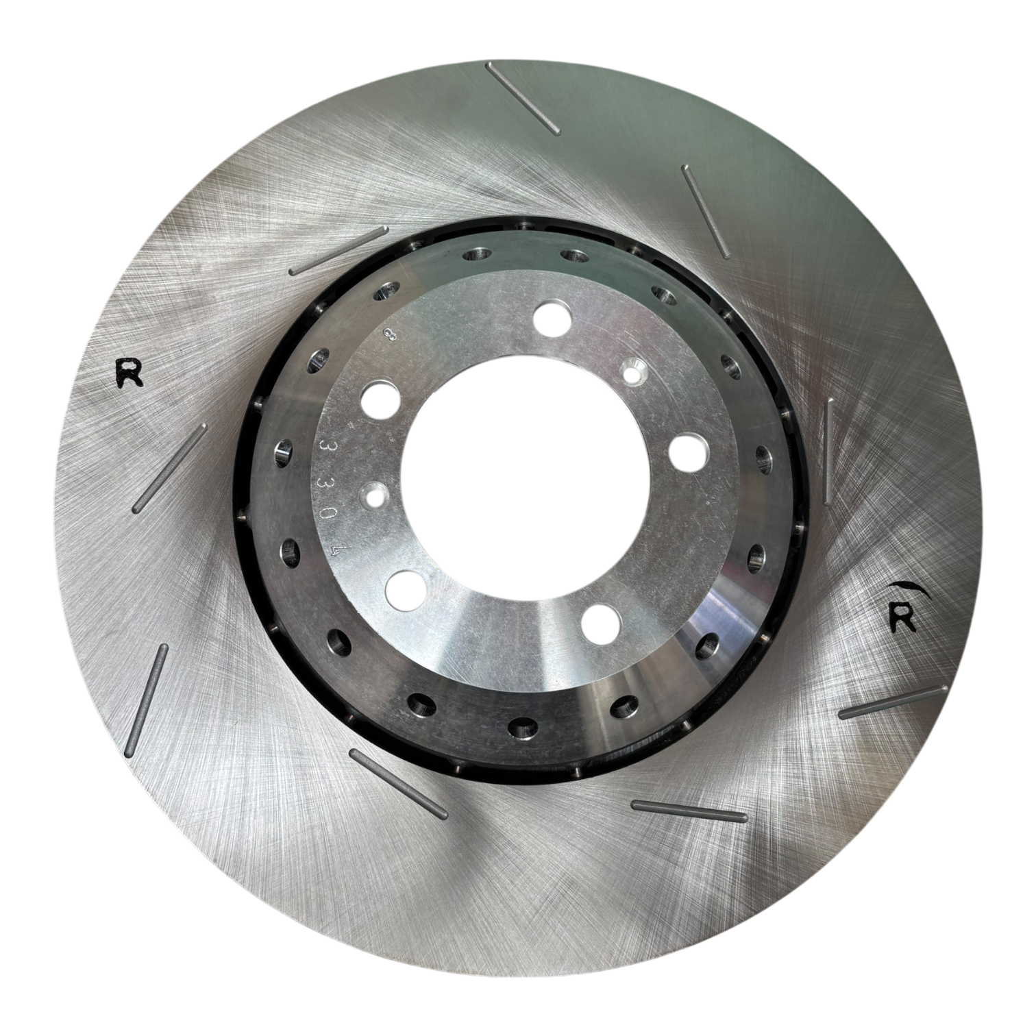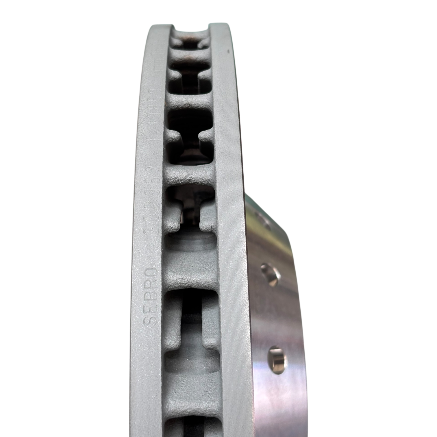 * Direccionalidad (Lado Derecho): A diferencia de los discos estándar, este modelo es direccional. Los álabes internos de ventilación están orientados específicamente para el lado derecho del vehículo para “bombear” el aire hacia afuera de manera eficiente mientras la rueda gira hacia adelante.