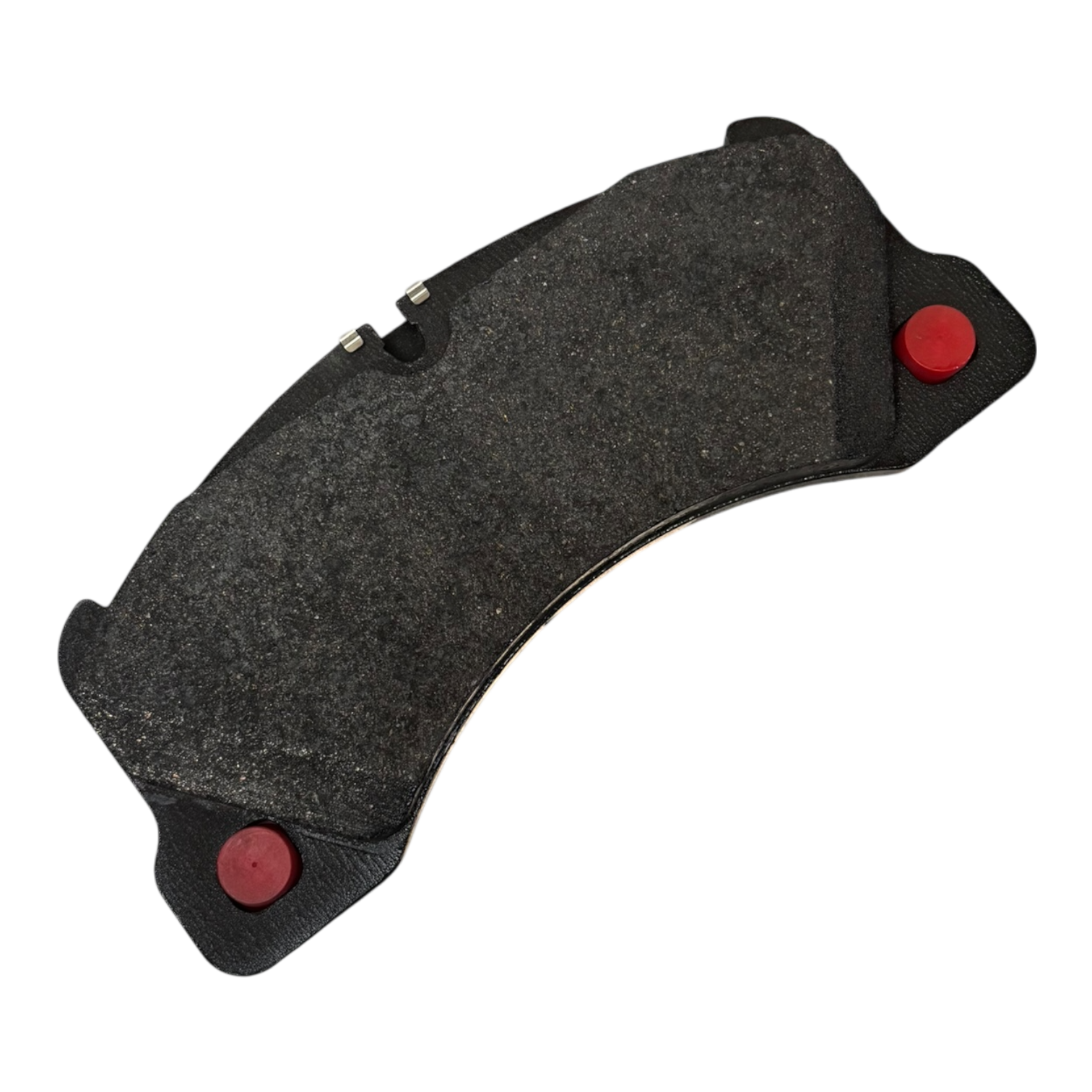 * Amortiguadores de Ruido Integrados: La placa posterior metálica cuenta con dos tapones de amortiguación rojos en los extremos. Estos elementos son fundamentales para absorber las vibraciones de baja frecuencia y asegurar que el frenado sea completamente silencioso, a pesar de la enorme presión ejercida por los pistones.
