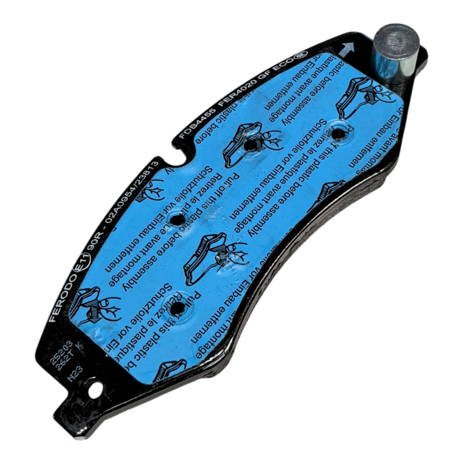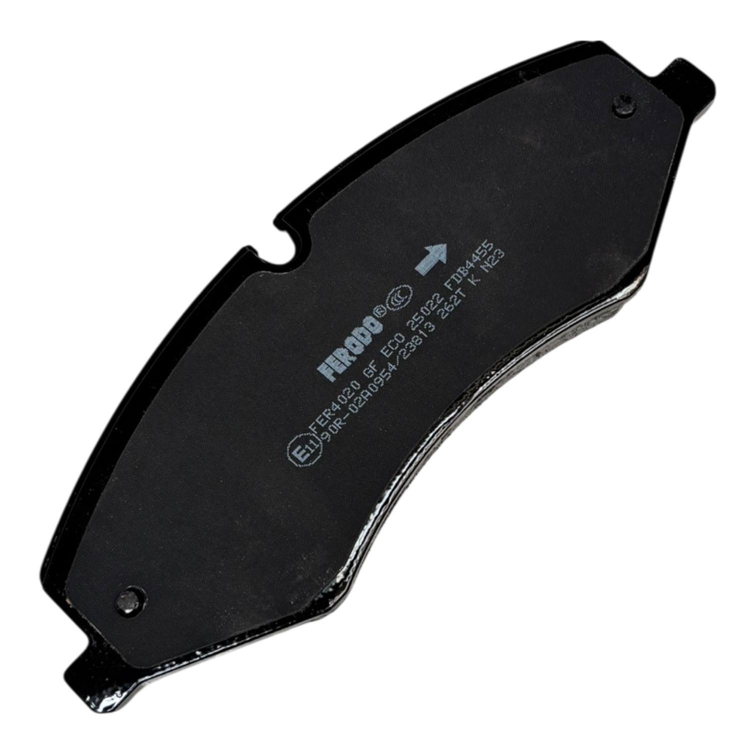 * Indicador de Dirección: Como se observa en la imagen, la pastilla cuenta con una flecha grabada que indica la dirección de rotación del disco. Es fundamental instalarla siguiendo esta guía para asegurar que el diseño de la pastilla evacue el calor y los gases correctamente.